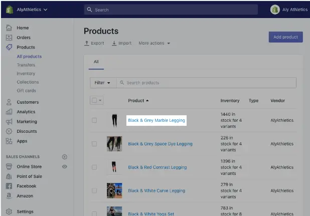 一旦你登录到你的Shopify账号,你会看到九个选项,其中一个就是“产品”。点击“产品”选项,你就可进入到产品管理页面。
