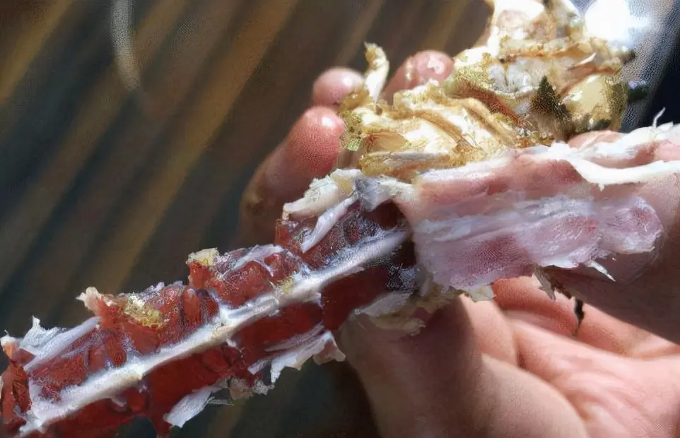 (3) 轻轻掰开虾壳,将虾肉取出。