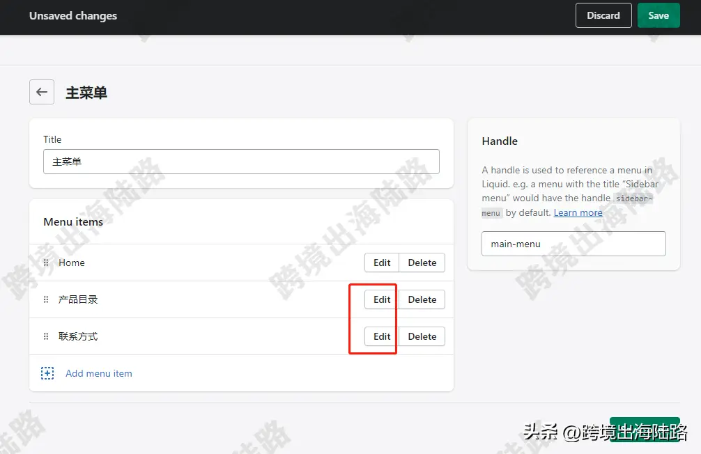 第一步:在Shopify后台创建主菜单