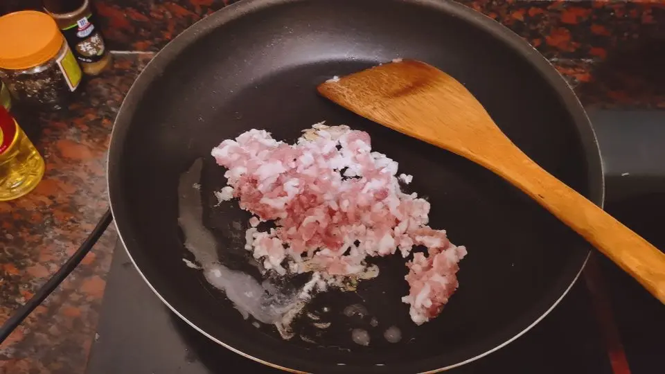 3.将焯好的虾皮放入锅中,加入少量食盐和生姜,大火翻炒,直到虾皮发黄,然后即可出锅。