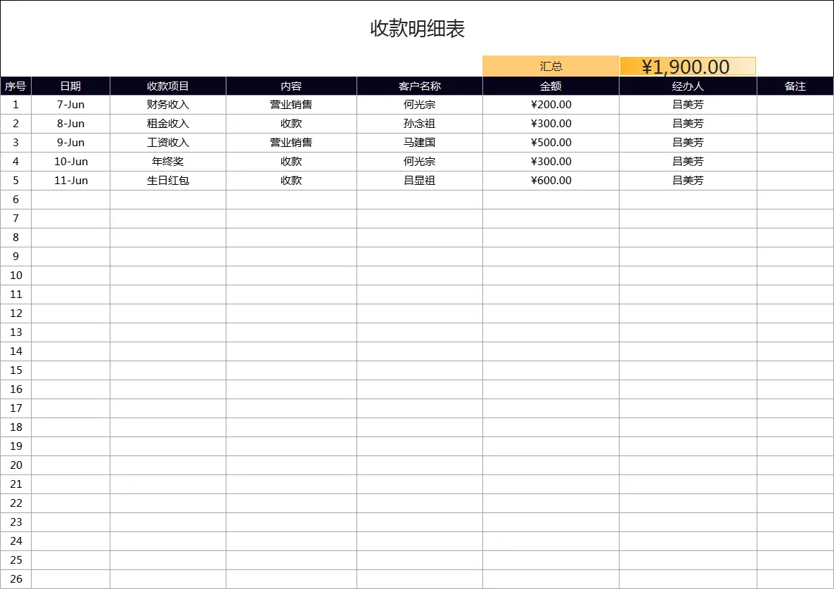 4.在表格中,可以使用颜色或标志来标示哪些客户已经支付,哪些客户还未支付,以便更容易地进行分类和筛选。