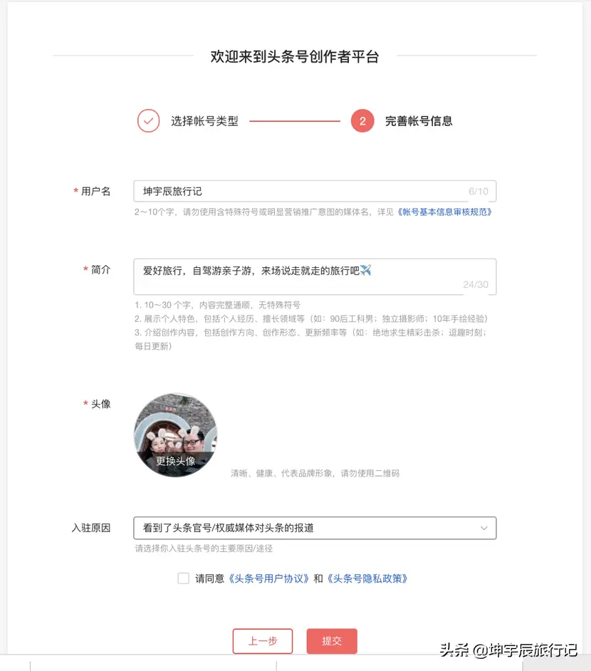 第五步:输入头条账号信息,并完成认证