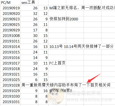 因为码迷也想做 快排+摩天楼的案例,正好一个老师说可以无偿帮忙刷一下,从2019.9.16号到2019.10.21号,这位SEO同仁给码迷刷过一个多月的快排。
