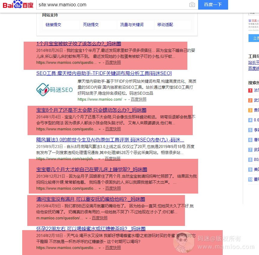 一晃之间,已经3个月了,码迷心里好苦啊,自7月底www.mamioo.com码迷官网上线以来,正是快排老师们最疯狂的时候。本来要跟快排的老师们合作一波快排+摩天楼的案例,无奈码迷不会玩快排,找老师代做没做上去,万念俱灰之际,网站主核心词【SEO工具】PC和M端百度双首页了!!我擦,这是怎么回事,码迷带着亲们一块儿盘盘我网站的优化步骤。